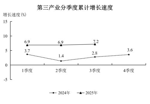 2025年前三季度第三产业分季度累计增长速度