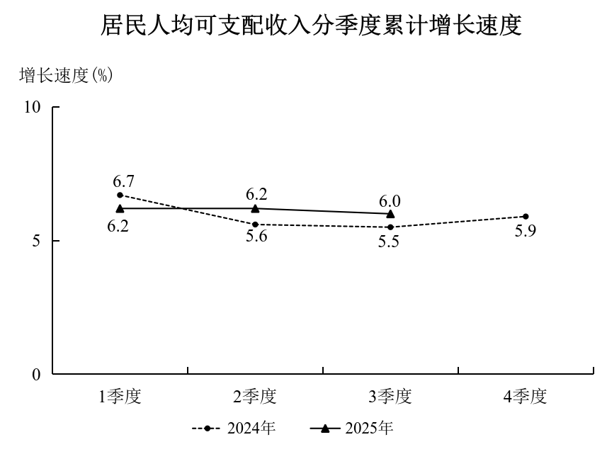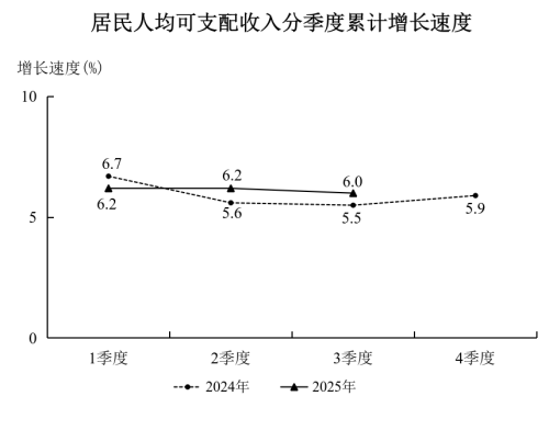 2025年前三季度居民人均可支配收入分季度累计增长速度