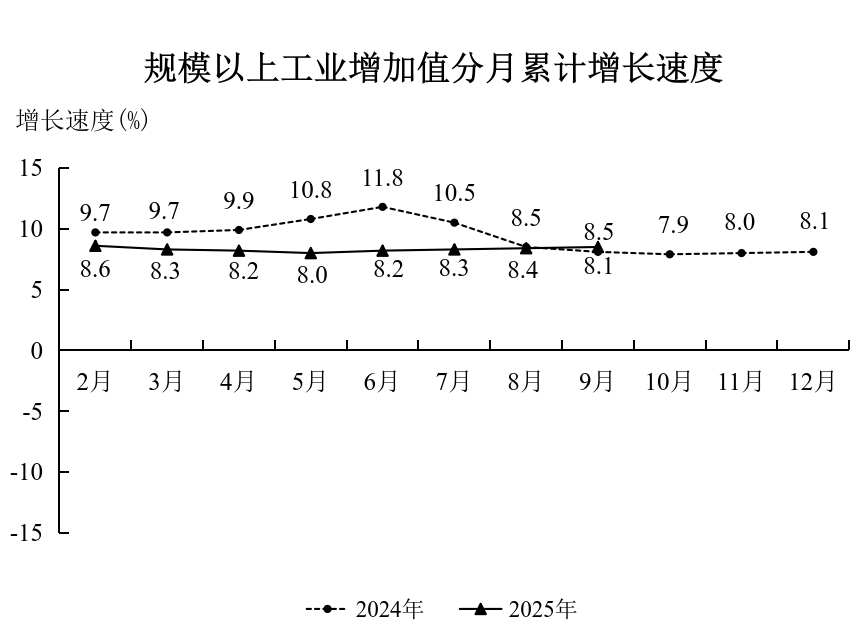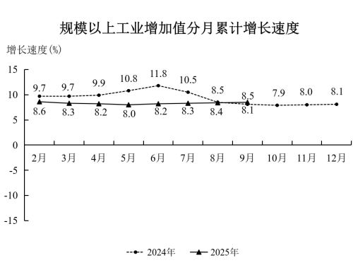 2025年1-9月规模以上工业增加值分月累计增长速度