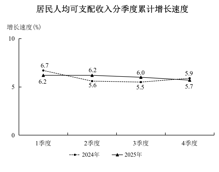 2025年居民人均可支配收入分季度累计增长速度