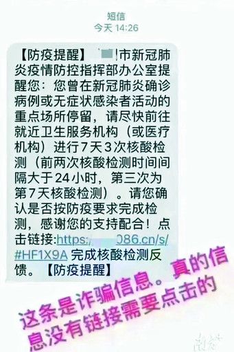 有时骗子会打来电话说自己是某某防疫站的,谎称你附近的小区已经出现有人员感染新冠的情况,而你已经成了密切接触者。