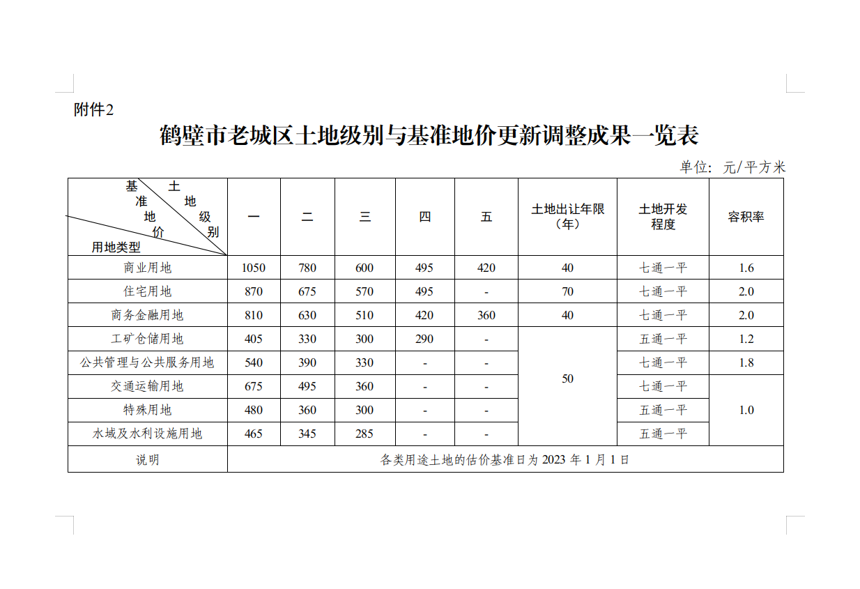 附件:1.鹤壁市本级新城区各类各级土地基准地价表