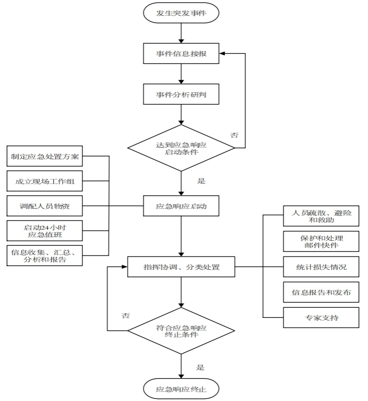 市邮政管理局:负责信息收集、监测等工作,并及时向市邮政业应急领导小组报告,提出启动或终止应急响应的建议;实施市邮政业应急领导小组批准的抢险救援方案,牵头组织指挥救援人员进入事故现场抢险救援。迅速控制和切断突发事件源头,防止损失扩大和次生灾害的发生;参与应急期间的督导检查;协调重要物资运输及各级指挥人员、抢险人员的休息场所;负责向省邮政管理局报告事故及救援情况;负责全市邮政业突发事件应急处置的沟通、协调;联合相关部门依法开展事故调查处理以及本行业内应急演练、宣传培训等活动。